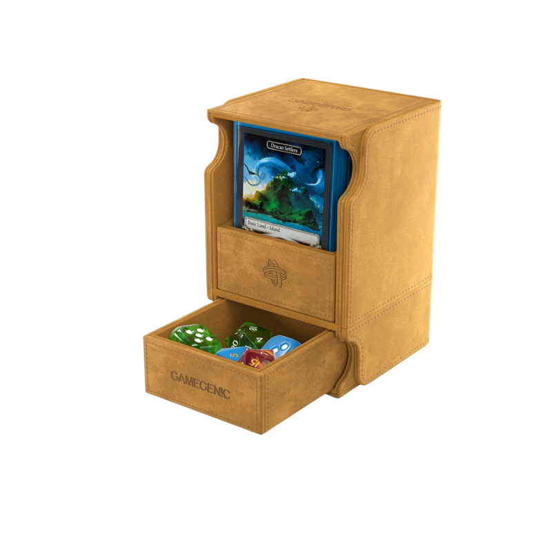 The convertible Watchtower combines deck box, accessories drawer and card holder in one elegant box. The card holder can keep up to 100 double-sleeved cards, protected by soft inner microfiber lining. The accessories drawer is perfect to house dice, tokens and other small items.