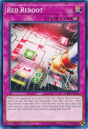 When your opponent activates a Trap Card: Negate the activation, and if you do, Set that card face-down, then they can Set 1 other Trap directly from their Deck. For the rest of this turn after this card resolves, your opponent cannot activate Trap Cards. You can activate this card from your hand by paying half your LP.